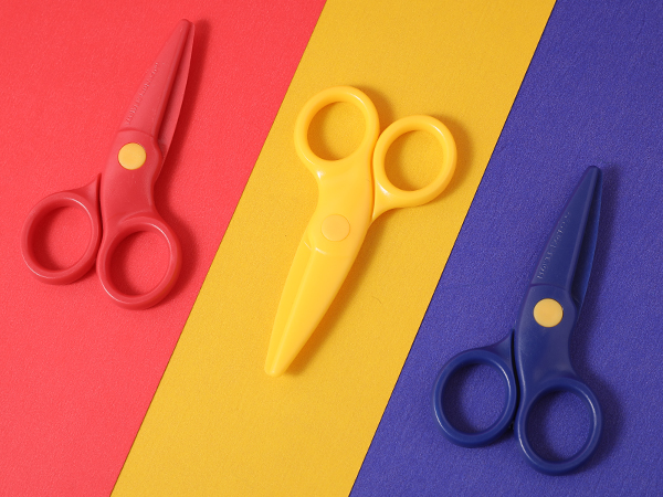 These preschool scissors offer round tips and plastic blades that can only cut paper,clay,card and Plasticine for crafting,which will lessen your worries about accidents occurring,but aduit's supervision is always the better.